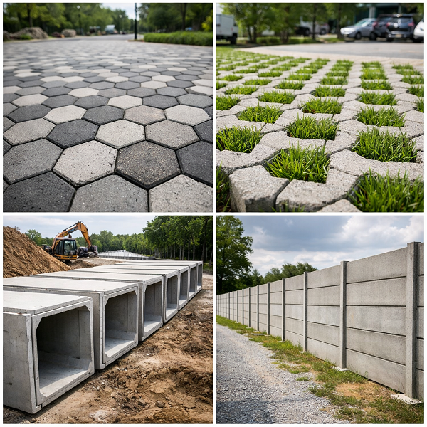 Penggunaan material seperti paving block, box culvert precast, dan pagar panel beton menunjukkan bagaimana industri konstruksi terus bergerak menuju efisiensi dan keberlanjutan. Material precast memungkinkan proses pembangunan yang lebih cepat, sementara inovasi seperti paving grass block membantu menjaga keseimbangan lingkungan.